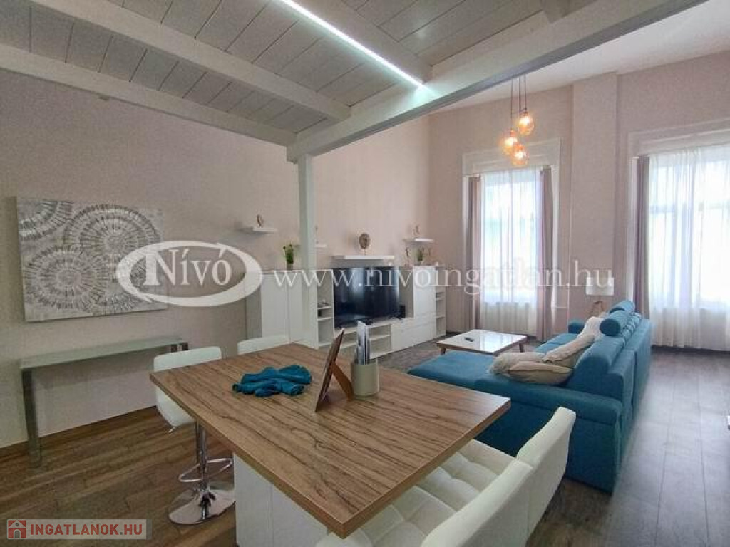 Veszprém történelmi belvárosában, patinás polgári épületben, tágas-világos terekkel rendelkező, felújított, 1. emeleti, 65 m2-es, exklúzív, bútorozott-gépesített polgári tégla lakás kiadó.
