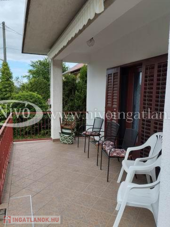 Az épület felső teraszáról (20 m2) részbeni kilátás van a Balatonra és panoráma a Péter-hegyre.