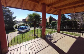A ház 970 m2-es parkosított, körbekerített telken van, fedett kocsibeálló tartozik hozzá.